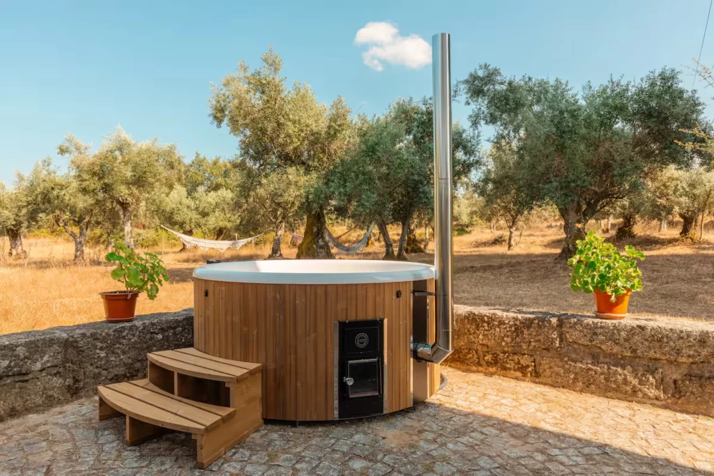 Wood powered nordic hot tub perfect for relaxing while listening to the surrounding nature