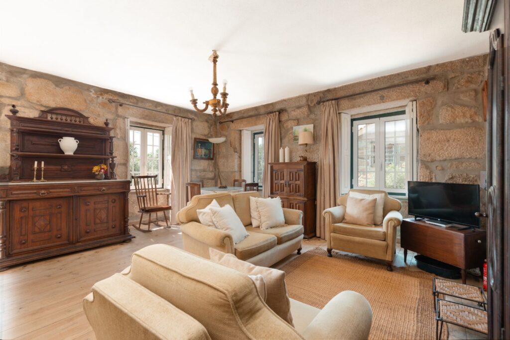 Cozy granite fireplace in the living room, to gather around on cooler evenings perfect for slow conversations and reading